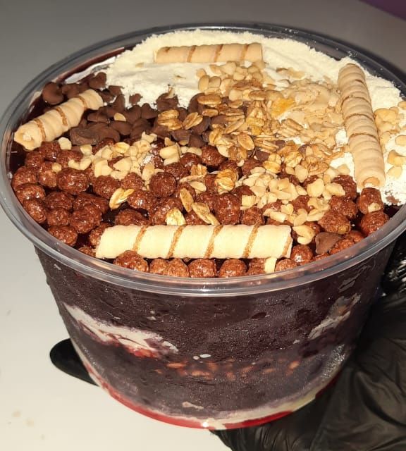 Sabores: Açaà tradicional, Açai sabor banana e Açaà Sabor morango.